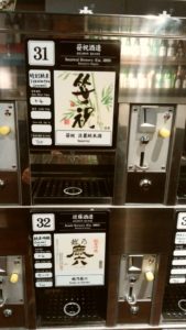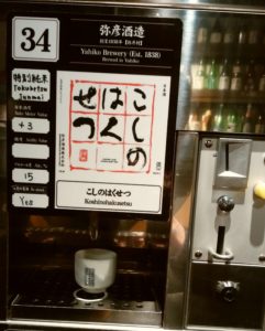 銘柄の横にはコインを入れるところがあるので、おちょこを設置してから、コインを入れて、黄色いボタンを押す。