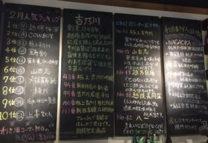 店内を見ると、黒板にオススメのお酒や、ランキングなど書いてある。