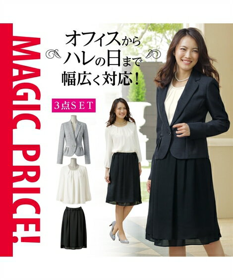 フォーマルウェア・フォーマルワンピース フォーマル3点セットスーツ(ラメ入テーラードジャケット+ビジュー付ブラウス+ギャザースカート) 18春 7~13 ニッセン nissen