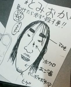 店を出てきて、紙を開くと、富岡を見つけたら殺せと書いてある紙を持っている。