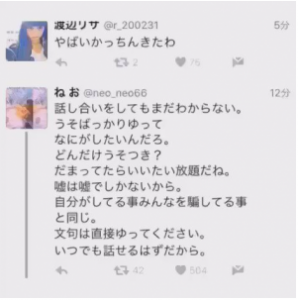 リサさんがねおさんの悪口を言っていたんだ、ねおさんにリプが届く。