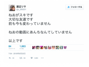 ねおさんの側に「渡辺リサが生放送でねおの悪口を言っていた」など。